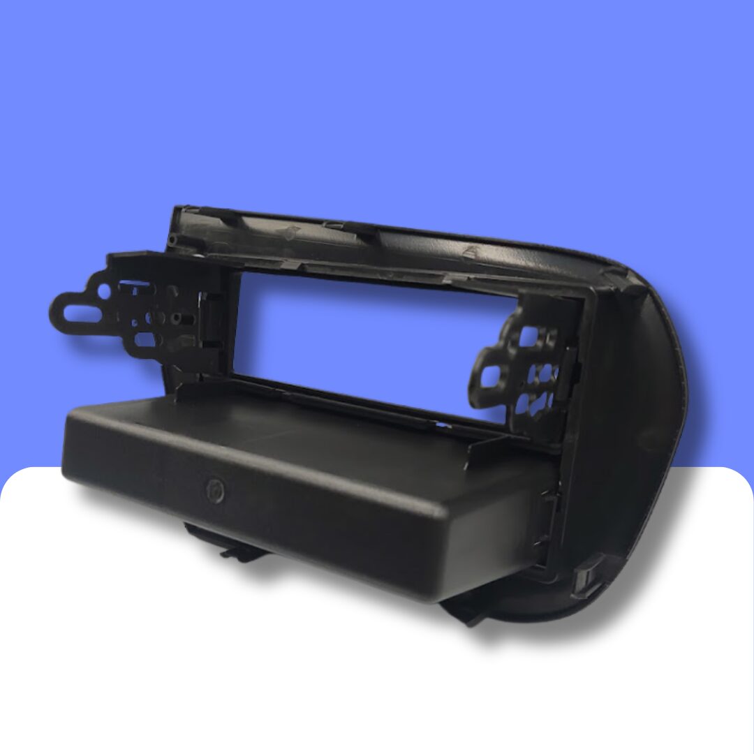 This fascia panel uses side fixing brackets to securely fit the new radio for a professional flush fitting finish. The fitting cage that comes with most aftermarket radios is not required. An optional pocket is supplied for single DIN fitting.