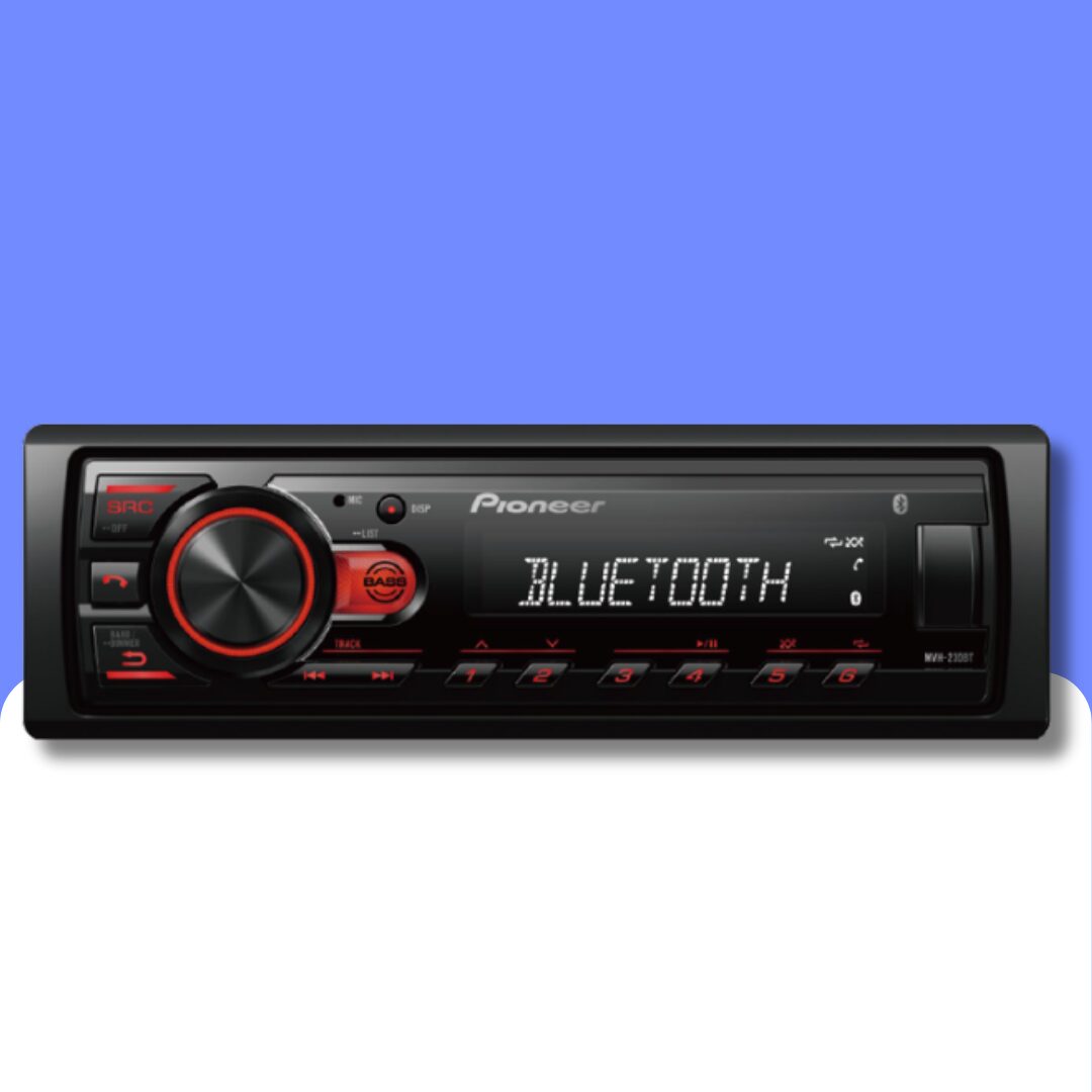 The Pioneer MVH-230BT packs punchy sound and all the basics you need in a compact and easy to fit package.