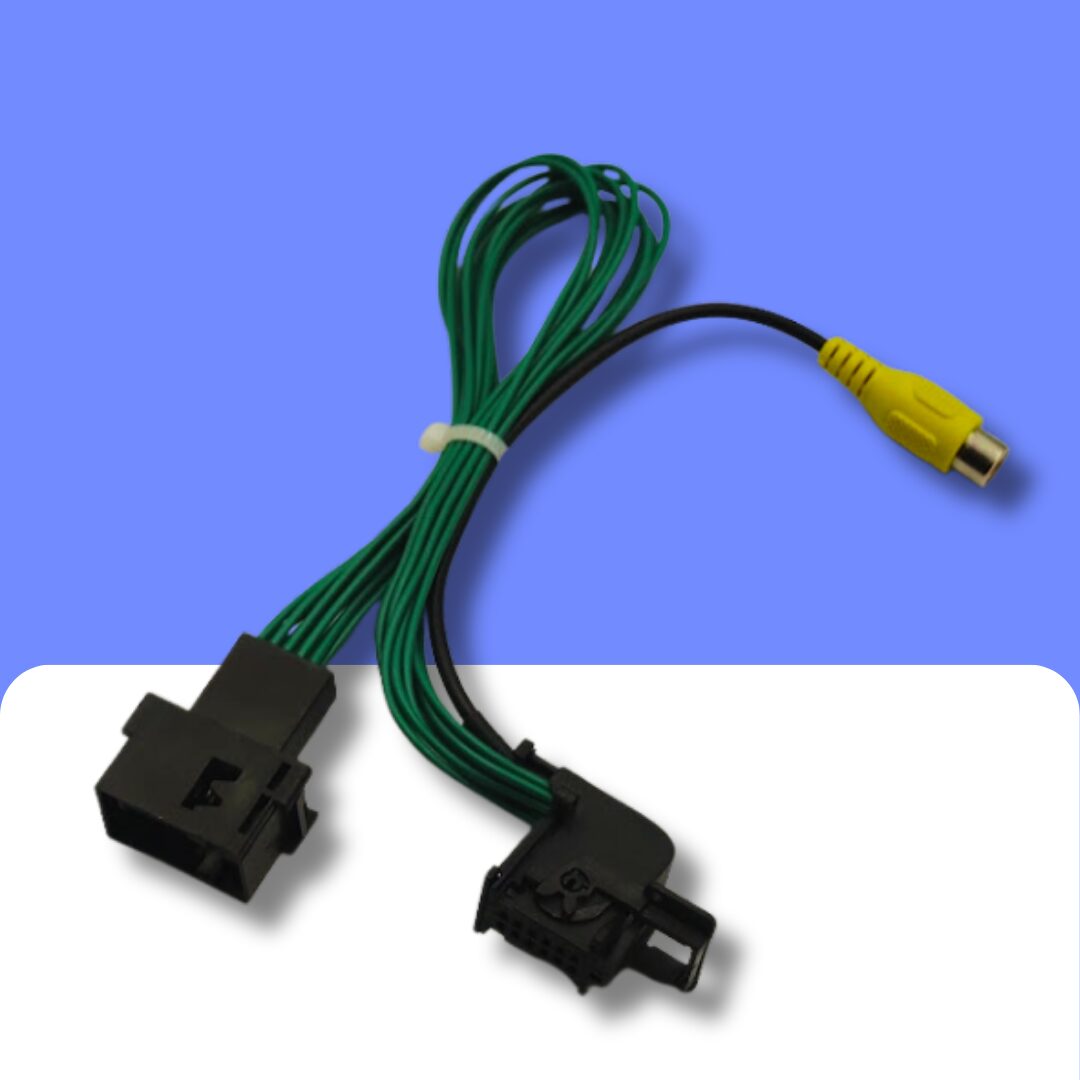 The adaptor has 12 pin male and female connectors on a pass through cable to connect to the API module and the original wiring harness with a RCA Phono camera input.