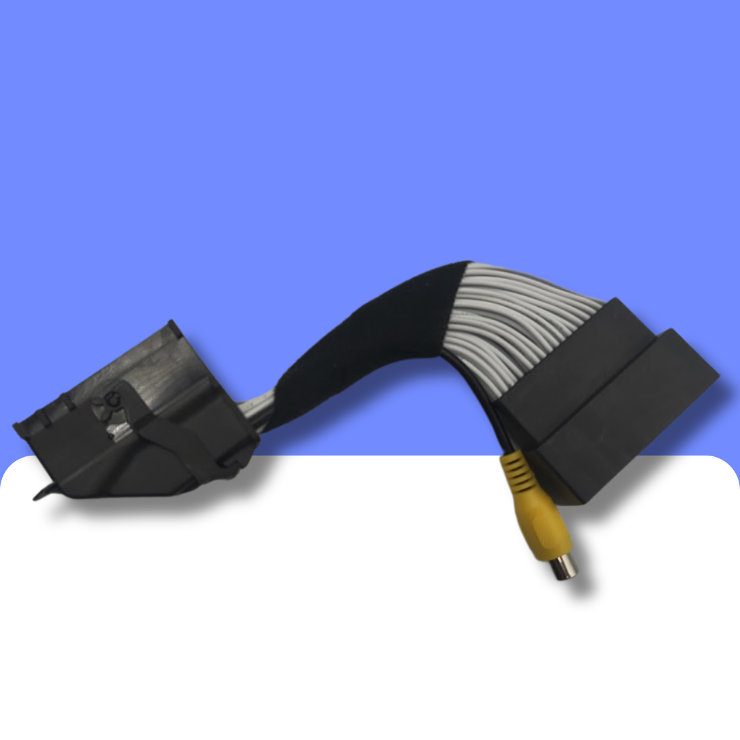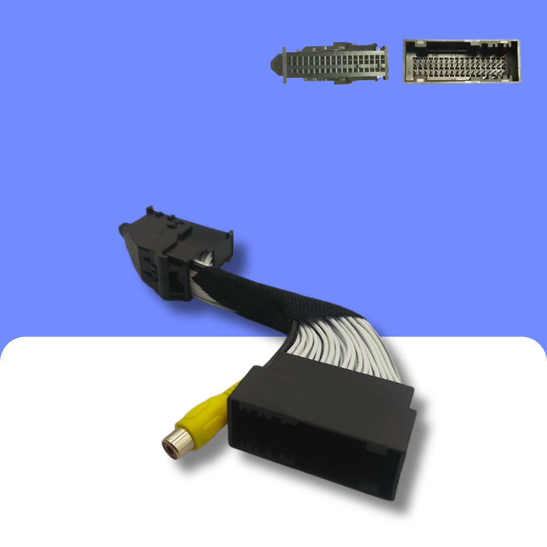 This cable enables an easy connection of an aftermarket NTSC camera to the vehicles original screen. After connection, the Vehicle will need programming to enable the rear view camera function.