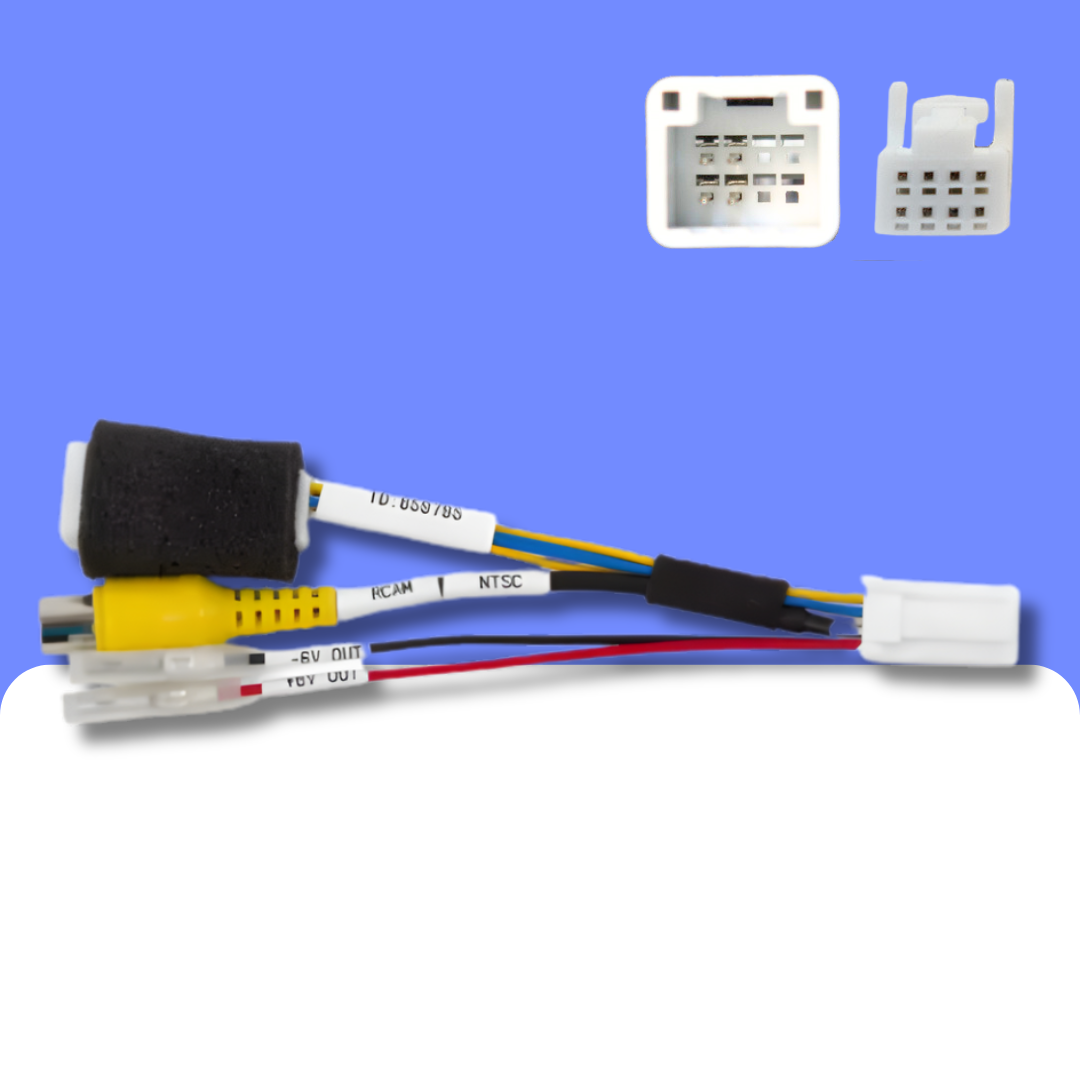 Enables connection of an aftermarket 6 volt NTSC camera to the vehicles OEM screen. The camera must be powered by the supplied 6v output from this harness for the car to recognise that a camera is attached and switch to it when in reverse.