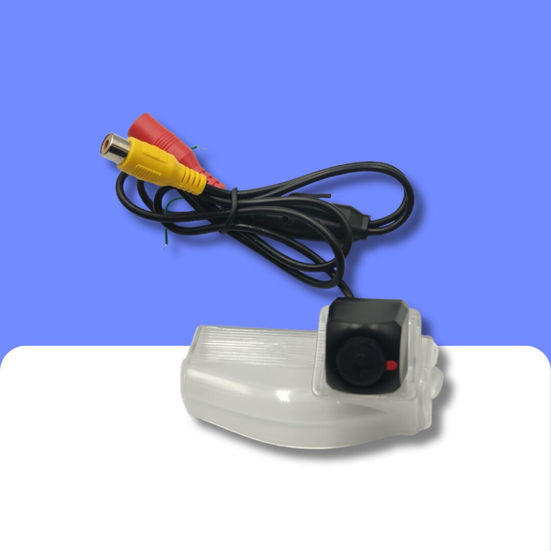 This kit consists of an NTSC camera built into a replacement number plate light lens, power and video cables to run the length of the vehicle and a 28 pin reverse camera adapter harness to connect the camera feed directly to the rear of the original MZD screen