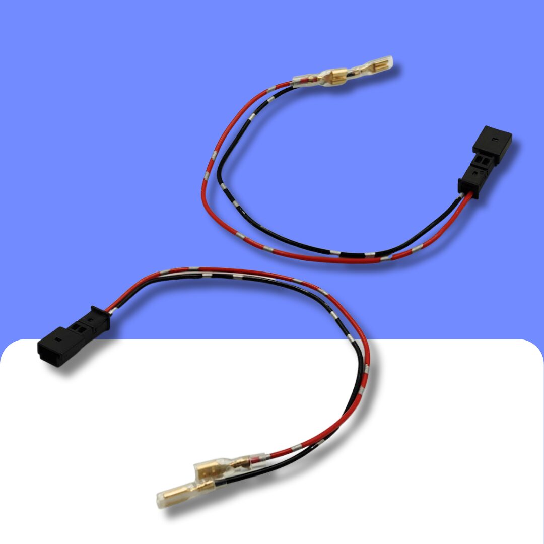A pair of speaker adapter cables; used to connect after market tweeters to the original loom on Tesla vehicles.