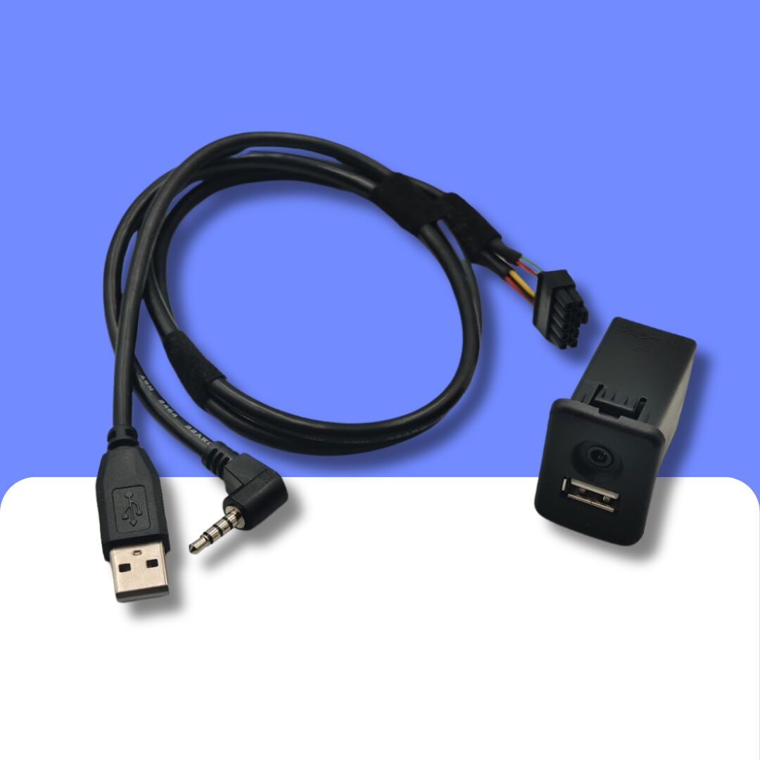 Connect this to the USB and AUXĀ 3.5mm audio connection on the back of new aftermarket radio and replace the original USB/AUX connection on the dashboard.