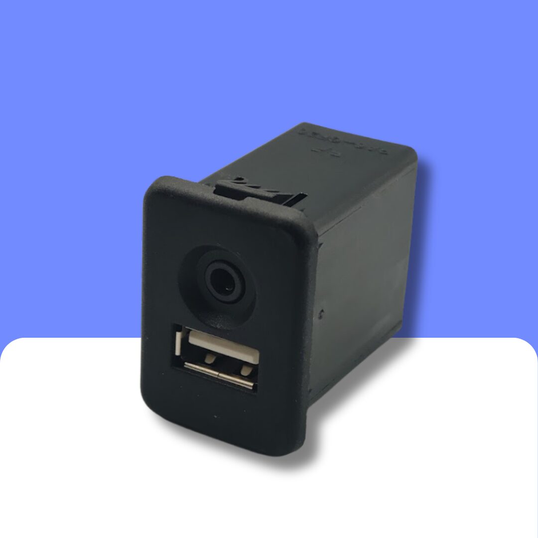 USB adapter and extension to replace of the original dashboard mount USBĀ and AUX socket when fitting an aftermarket head unit on various Vauxhall, Chevrolet and Holden cars models.