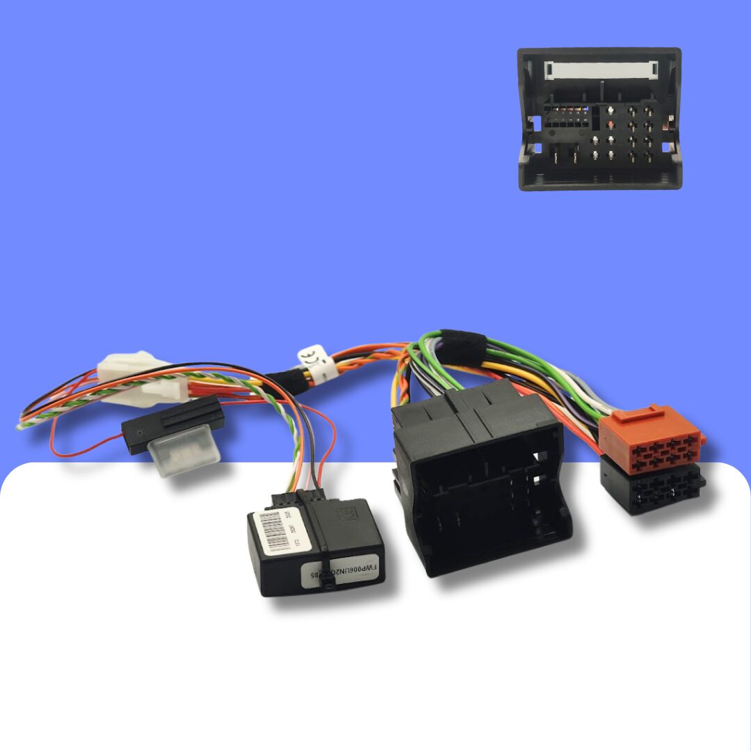 ISO adapter harness for Volkswagen vehicles with the new style quadlock connectors that have large power and ground terminals at the back of the radio.